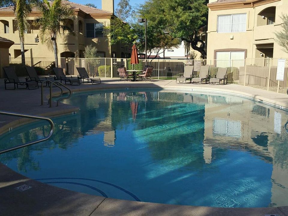 Gated Community....Great location perfect for ASU students. Two bedroom two bath condo in move in ready condition with laminate flooring throughout. All necessary appliances and prime location in complex. Unit is located near pool and community center.