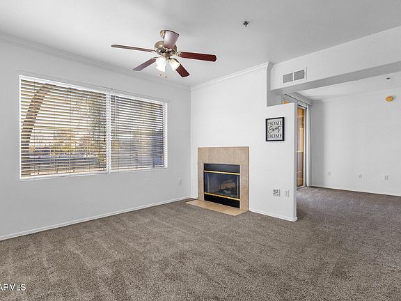 Gated community of Villa Real located just off the 101 offering seamless access to every corner of the valley. Minutes away from popular destinations like ASU, Sky Harbor International Airport, Mill Avenue, Tempe Marketplace, Old Town Scottsdale and right next door to Sonoran University of Health Sciences. This desirable top-floor end unit boasts tall vaulted ceilings and fresh paint throughout! Tons of natural ligtht due to the abundance of windows. A cozy fireplace in the family room. The kitchen includes stainless appliances to include the refrigerator! A full size washer and dryer is in the unit and included!