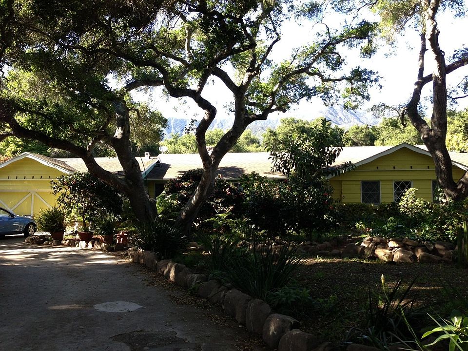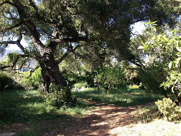 Gorgeous oak studded 1.33 ac lot with 3/2 home which needs updating. Trustee Sale. Tropical landscaping hides this property from East Valley and gives it incredible privacy. House has formal DR, den, FP in LR, breakfast area in kitchen. Bamboo floors. Patio fronts on intimate garden which then leads to huge natural back of parcel full of stately oaks and fruit trees, a magical discovery!