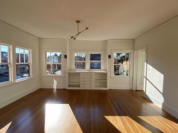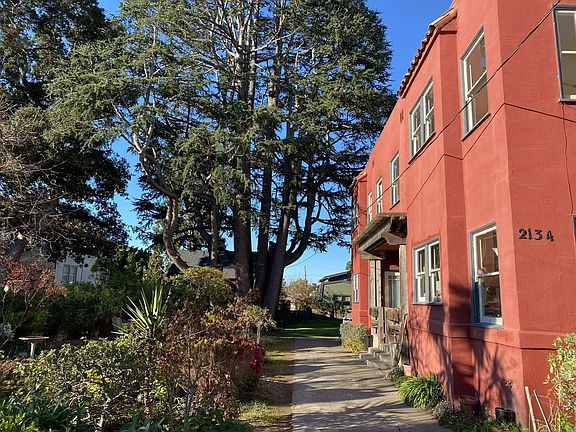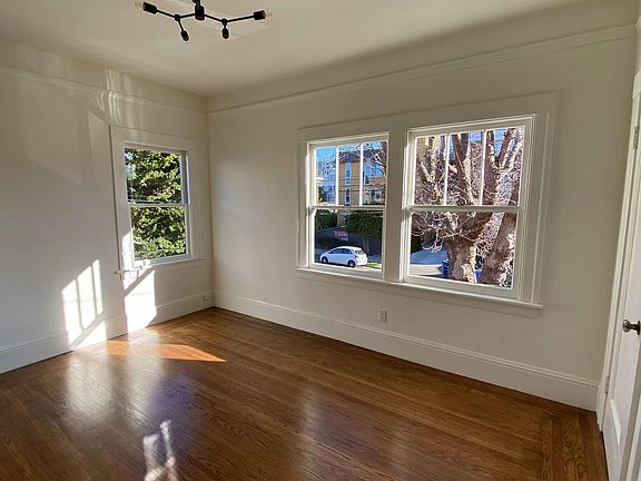 This charming, quiet, light-filled unfurnished Berkeley condo sits on a large lot with mature trees, community gardens, and a dining patio. The townhouse-style condo has a private entrance on the first floor leading to a living space with lots of natural light above. The expansive floorplan with high ceilings and hardwood floors blends the original character with a modern aesthetic. The large living room has built-in shelves and an alcove perfect for an office or reading nook. The kitchen has new quartz countertops and dining area with a built-in banquette. New quartz shower surrounds the original cast iron bathtub. Spacious primary bedroom with walk-in closet. Plenty of storage in the huge entry walk-in closet. Laundry on-site with access from the kitchen. Off-street parking with a private garage. Centrally located, and close to Downtown Berkeley BART, UC Berkeley campus, artisan shops, and gourmet restaurants. No smoking. Preferably no pets. Tenant pays for utilities