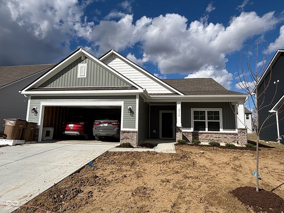 Newly-constructed 3 BR, 2 BA brick & vinyl home in Abbey Place; entry foyer leads to living room & eat-in kitchen highlighted by vinyl plank flooring; office/study; primary bedroom with walk-in closet & private bath w/double-sink vanity; laundry room; 2-car garage; front porch; rear concrete patio.