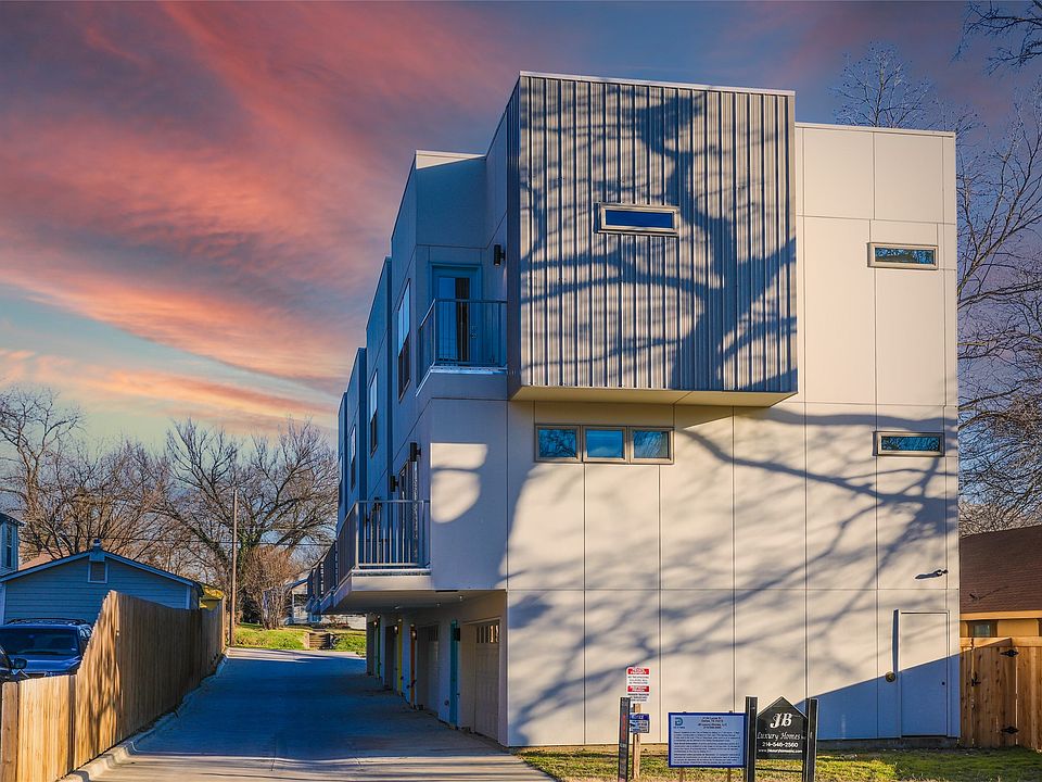 Rare new construction Investor Opportunity near the UTSW Medical District, the Design District in quickly transitioning prime area. These 4 residences have spacious and open second flr living areas with large quartz covered kitchen islands and a private balconies with large windows. The third level has 2 BRs and baths. Access roof top deck w city views off the 4th floor stairs that offers spacious outdoor living with easy access from inside. The first levels have a small nook behind the the stairs that would be an ideal computer work area or simply additional storage and 2 car attached garages. Unique high efficiency HVAC units can pinpoint areas to heat and the cool the interiors by room. March completion.