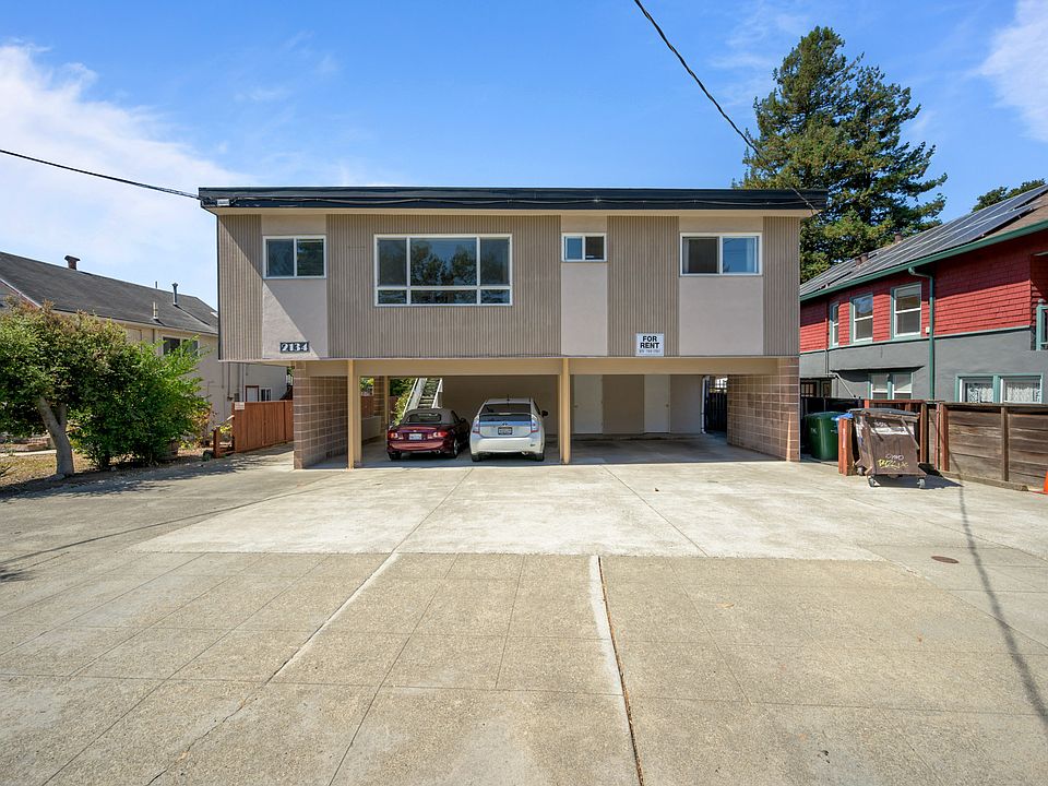 Clean spacious 3 bedroom 2 bath 2nd floor apartment. All walls interior and exterior are fully insulated for noise and energy reduction. Free bike locker, gas range, wall heater, off-street covered parking available for an extra $50 per month. Rent includes water, trash, common are maintenance. Walking distance to UC Berkeley and BART. Owner pays water, trash. gas common area maintenance.