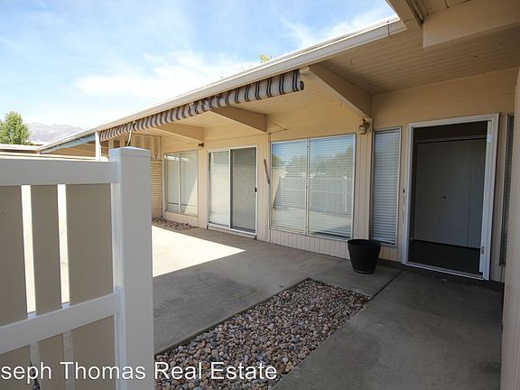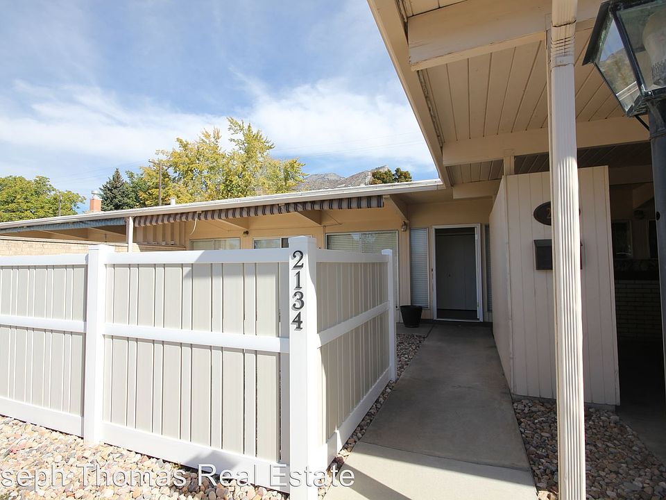 Single Level 2 Bedroom in Private Community - This is a lovely single story two bedroom home located in a private community right off of Canyon Road in Provo. It has a quaint, fenced front deck area, perfect for entertaining or enjoying Provo's fall nights. Entering the front door you are taken into a large, lit front room complete with a built-in bookshelf. It has several wall-length windows as well as a sliding glass door to the front deck area. The kitchen has a nice dining space with new tile and access to the back yard. The kitchen itself is very spacious with plenty of cupboards and an island. The backyard is absolutely beautiful with trees and bushes and a nice lawn as well as a patio. The master bedroom also has plenty of windows with natural light looking over the backyard. It has a his and hers closet as well as access to the backyard through a sliding glass door. There is a newly remodeled bathroom with new cabinets and counters. The second bedroom is only slightly less larger than the first and has just as much natural light. This home is in a beautiful, quiet, peaceful location in a wonderful area of Provo. The rent is $1125 and the security deposit is also $1225. All applicants must have a credit score of 600 or higher and an income of at least 3x the rent. (RLNE3370154)