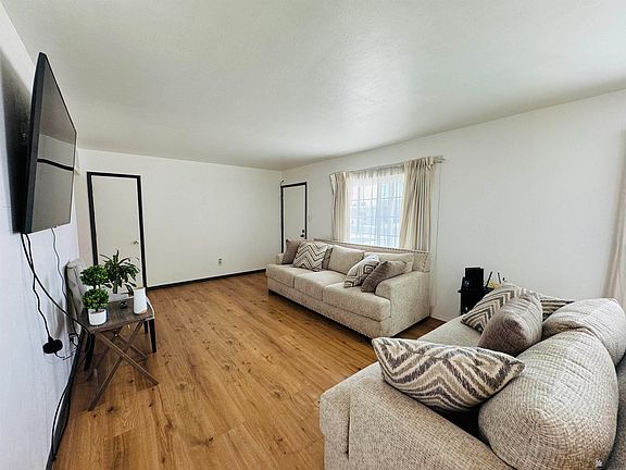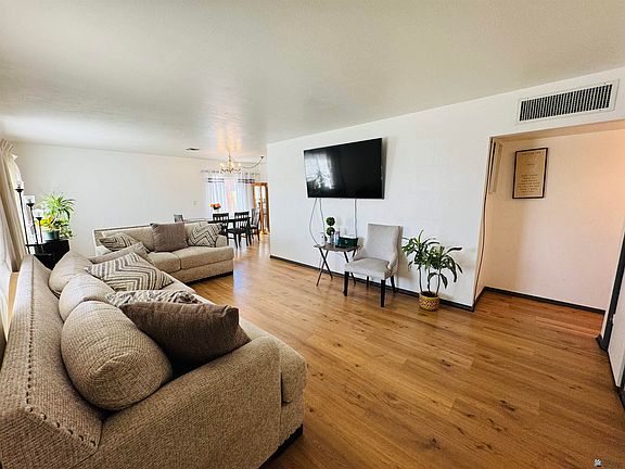 This charming starter home offers a blend of classic features and modern updates, making it move-in ready. The living room, dining room, and kitchen boast new laminate flooring, enhancing the home’s appeal. The kitchen retains its original cabinets, complete with a lazy Susan and pull-out shelves for added convenience. Situated within walking distance of a park, school, and post office, the location is ideal for families and professionals alike. The covered patio and large fenced backyard provide ample space for outdoor activities and entertaining.
