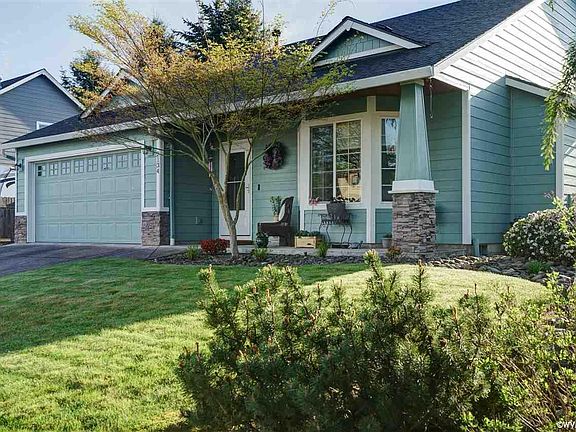 Accepted Offer with Contingencies. Immaculate single story Craftsman style in Stayton's Sylvan Springs! Super neighborhood w/easy access for commute in any direction. Lovely home featuring new arch comp roof, new exterior paint, rich laminate-wood flooring, beautiful cabinetry w/island in kitchen, "great room" flr plan w/cozy gas FP, bay windows, gas F/A heat w/air AND Power is NEARLY FREE w/Tesla Solar Panels! Entertain under covered back patio! Raised flower beds, berries, UG sprinklers, storage shed, area for RV pad. Won't last long!