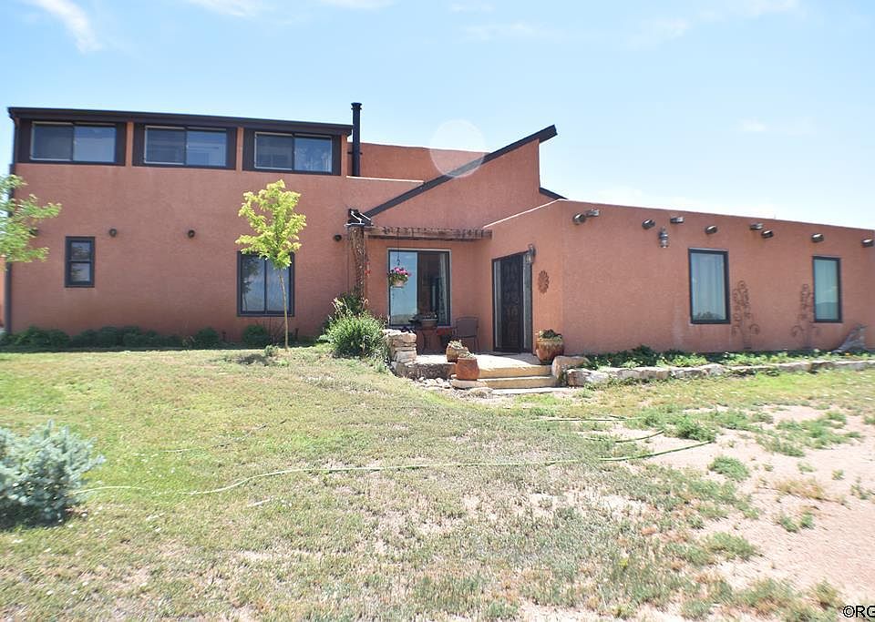 This home sits on top of a bluff and has views for miles! It is very large with 3168 square feet of living space! There are four bedrooms,and upper area that could be another bedroom. There is also a sun-room upstairs that is great for relaxing and enjoying the endless views of the Rocky Mountains. One of the bedrooms downstairs even has it's own sliding glass door with a small deck just outside the room. The master bedroom is large with built in shelves on one wall and vaulted ceilings. The master also has a spacious walk in closet and a place for a bathroom to be installed. The kitchen also has a walk out to the yard. The kitchen is ready for any chef! It has a Commercial Viking range for an extraordinary culinary experience, wine fridge, plenty of cabinets, concrete counter-tops and enough room for a table and chairs. Just off of the kitchen is a formal dining room. There is also a formal living room as well as a very large family room with it's own gas insert kiva fireplace. The family room has a walk out that leads to the well landscaped back yard. The backyard has a decorative pond, a small herb garden and lots of room for entertaining. Good producing well and large garage.