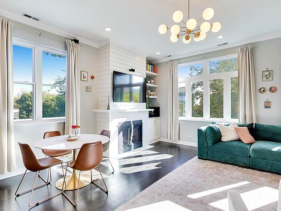 Beautifully bright and spacious 3-Bedroom Duplex-Up in Prime Wicker Park Location. The main level features a fully renovated kitchen with sleek white cabinetry, quartz countertops, a marble backsplash, and a custom dry bar providing ample storage. The open-concept living and dining area easily accommodates a large table and oversized sectional, enhanced by surround sound and a updated cozy gas fireplace and custom shelving surround. Upstairs, the primary suite boasts a generous bedroom with blackout window treatments, a massive organized walk-in closet, and full bath with soaking tub. Step out onto the 400 SF private deck, complete with a wet bar and custom pergola-ideal for grilling, entertaining, or simply enjoying panoramic views of the Chicago skyline. Two additional bedrooms on the main level (one en suite, one featuring a custom murphy bed) offer flexible options for guest space, home offices, or fitness areas. Additional highlights include refinished hardwood floors throughout, new baseboards and casings (2019), crown molding, and custom window treatments. Mechanical updates include a new humidifier (2019), high-efficiency AC (2018), and furnace/air handler (2015), new windows (2024), washer/dryer, and new trim. The building received a new roofs/repairs in 2018/2025, tuck pointing and sealing in 2019, with a common entry and stair refresh in 2020. Gated parking included. Unbeatable location with easy access to expressways, public transit, the 606 Trail, and Wicker Park's best restaurants and entertainment. HOA monthly: $366