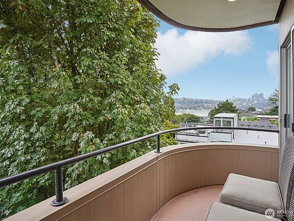 Fully Remodeled Top-Floor Condo with Panoramic Views. Sophisticated Outlook Building home with sweeping views of Lake Union, Gas Works & Downtown. Fully remodeled to the studs in 2019, this East Queen Anne condo blends modern luxury with timeless details. Features include a sunken living room with wood-burning brick fireplace, skylights, Black Forest hardwoods & custom built-ins. Gourmet kitchen with quartz counters & premium appliances, spa-like baths with radiant floors & Ann Sacks tile. Added comforts: ductless mini-splits, built-in stereo, private balcony, parking & storage. HOA covers most utilities. Walk to SLU, Queen Anne & Downtown for dining, trails & transit. No rental cap; pet-friendly (cats & dogs up to 30 lbs).