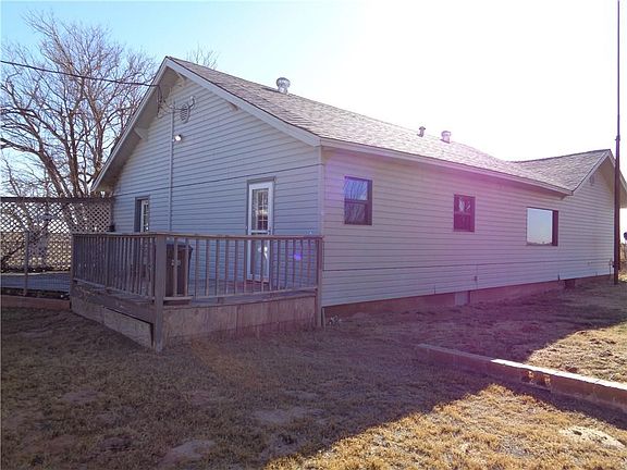 Country home on 8 Acres. Recent updates include vinyl siding, roof, HVAC and flooring through out home. Large master bathroom with walk-in shower, jacuzzi tub and double vanity. Front porch with great views of the country. 2 large outbuildings and plenty of covered parking. Home is 10 miles from Frederick and 13 miles from Tipton with good roads