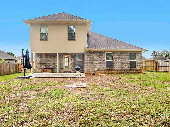 This Silverhill, Alabama home is situated in a prime location. It's centrally positioned within Baldwin County and nestled in a charming neighborhood featuring DSLD homes, known for its unique appeal. The neighborhood also boasts two fully stocked fishing ponds for residents to enjoy. This two-story home, built in 2018, is equipped with smart technology features that make life convenient. As you step inside, you'll be greeted by soaring ceilings and an open-concept living area, complete with a kitchen and breakfast bar perfect for leisurely Sunday mornings. The kitchen is adorned with stunning granite countertops, which are also found in all 2.5 bathrooms. Convenience is key, with a half bath easily accessible from the living area for guests. The master bedroom is located on the main level, offering an en-suite bathroom with dual vanities, a separate tub, and a shower. The main level also hosts the laundry room for effortless access. Upstairs, there's a walkout attic space for convenient storage, and the split HVAC system ensures comfort throughout the upper level. Stepping into the spacious backyard, you'll find it newly fenced and equipped with a sizable shed for all your storage needs. Numerous improvements have been made to the home, including the addition of gutters, landscaping enhancements, and the removal of carpeting in all rooms except two guest bedrooms. This house truly has it all, combining modern amenities with a convenient location in a charming neighborhood.