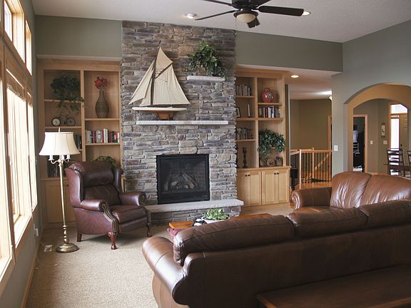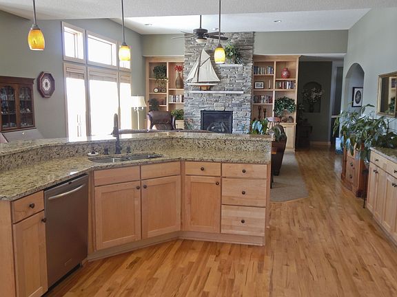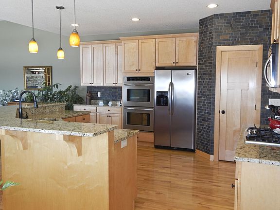 Newer, beautiful walkout rambler in a high demand community! Located in a cul-de-sac setting with amazing views! Quality construction, loaded w/maple doors, cabinets, built-ins; & more! Two stone fireplaces, large maintenance-free deck, granite, stone, stamped concrete driveway. Two bedrooms on the main floor and three bedrooms in the lower level. Private master bath with corner jacuzzi tub, dual sinks and lots of natural light, featuring a glass block window. Formal dining room with open arch ways to the family room and kitchen. Gorgeous state of the art kitchen with tons of cabinet and counter space, granite, wood floors, stainless steel appliances, double oven, and beautiful modern brick backsplash that also surrounds the outside of the large pantry. Large lower level offers a family room, amusement room, spacious wet bar, three bedrooms and two bathrooms. Modern lighting and fixtures and neutral colors throughout. Enjoy the outdoors on the deck, patio or around the firepit. Over 4,000 finished square feet, wow! This home has it all! 2 mi from I-35. Award-winning Lakeville schools.