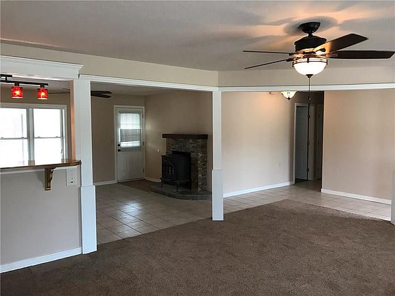 Remodeled with fresh paint and carpet. Double convection oven and built in appliances. Large kitchen with breakfast bar. Free standing wood burning stove. Storm doors, dual pane low-E vinyl tilt windows and extra blown cellulose insulation. Water softener. Newer roof and guttering. 24'x14'insulated shop with electric. Large fenced back yard with a large covered deck and garden hot house. Landscaping, mature oak and fruit trees. Spring fed pond at the rear of property. Bring your horses and cows you will be happy to be in the country.