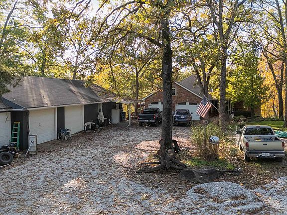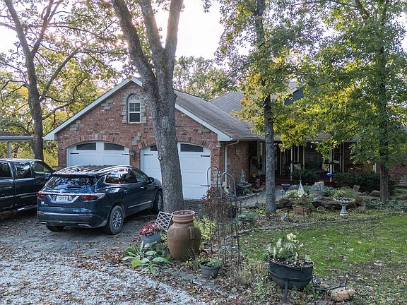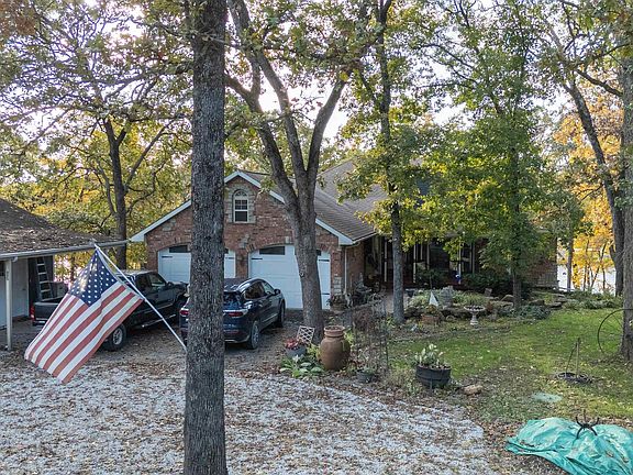 Welcome to this stunning custom-built brick-front home overlooking the serene waters of Pomme De Terre Lake, nestled quietly at the end of a dead-end road and adjoining Corps of Engineer land for added privacy and natural beauty. This thoughtfully designed residence offers a spacious and functional layout with the master suite, office, laundry, pantry, and powder room all conveniently located on the main level. Step into the expansive living room featuring a vaulted tongue-and-groove wood ceiling, a massive stone fireplace, and large windows that frame breathtaking lake views. The semi-open concept flows seamlessly into a generous kitchen and dining area, both boasting vaulted ceilings with exposed wood beams and panoramic views of the lake and surrounding protected land. Upstairs, a versatile lofted space overlooks the foyer and living room—perfect for a playroom, craft area, guest bedroom, or whatever suits your lifestyle. The full walkout basement includes two finished bedrooms and a bathroom, with additional space currently used for storage or left unfinished. While not currently being used, this area offers tremendous potential for a future family room or entertainment space with minimal effort. Outside, enjoy a large deck, stone retaining wall with a large paver patio ideal for entertaining or relaxing while taking in the lake views. The attached two-car garage provides convenience, while the adjacent heated garage/workshop with a half bath adds flexibility for hobbies or extra storage. Stamped concrete sidewalks and ample parking complete the exterior features. Located just minutes from multiple boat ramps, nearby towns, and the Lucas Oil Speedway in Wheatland, MO, this property offers the perfect blend of peaceful seclusion and easy access to recreation and amenities.