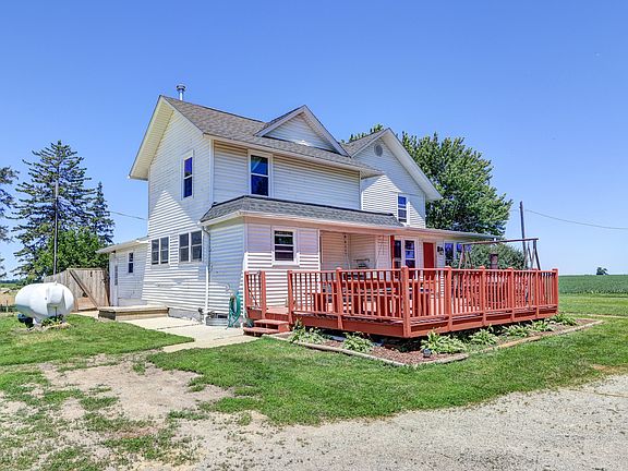 Welcome to your dream country home and horse property on a picturesque landscape designed for both comfort and equestrian living. Nestled on 1.76 acres, step into this enchanting country-style residence and experience its unique appeal. The large eat-in kitchen features lots of cabinet and counter space along with stunning live-edge wood countertops with bar stools included. The home includes three spacious bedrooms upstairs, plus a non-conforming bedroom on the main floor that can serve as an additional sleeping space or office. There are two full bathrooms, one on each floor, for added convenience. The dining room, living room, and family room all boast hardwood floors, including all bedrooms and hallways on the second floor! Many closets and storage space throughout the home including a walk-in cedar closet on the second floor. The main floor also features a laundry room/mudroom with outside access. Recent upgrades include brand-new windows installed in 2023 and a new roof added in 2022. Outside, you'll find a fenced dog yard and a spacious 22x16 deck, ideal for barbecues and outdoor gatherings. You will appreciate the 30x40 pole barn, which includes a two-car garage, three horse stalls, hay loft for 50+ bales, ample storage space, and a sliding door that opens directly to the pasture. LP is run to the barn ready for your own heat source to be put in. The property also features a 120x76 riding arena, perfect for horses or other animals. Additional amenities include an owned LP tank and a playset that stays with the property. Conveniently located just 6 miles from town and a short distance to Jordan Creek. Cattle farm located right next to property. Call for a showing today and don't miss this dream country home!