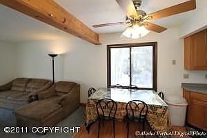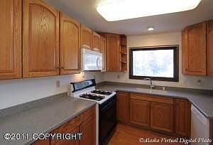 Chugiak home with 3 bedrooms and 1.5 baths. Newer paint, laminate flooring appliances in the kitchen. There is also a wood stove in the living room, under stair storage and a back porch.