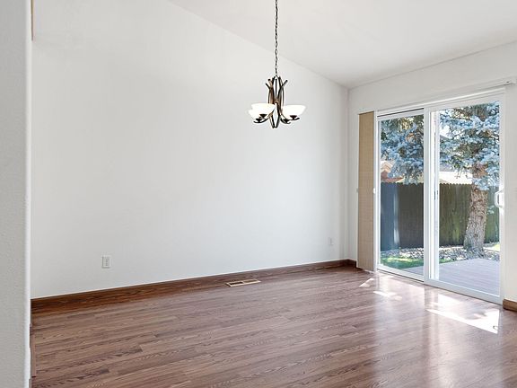 Perfect single level home on a private lot in NE Bend! Don't miss this fantastic opportunity to make this home yours and everything you envision it to be! Home features a large living room with vaulted ceilings, freestanding gas fireplace, pergo, carpet and tile flooring, a main dining area and an additional dining nook with bay windows, solid oak cabinets, ample kitchen counter space, and all appliances are included including the washer & dryer and a stainless steel refrigerator. All the bedrooms are well sized and the primary suite and bath features an open dual vanity area, a large walk-in closet, separate shower and tub and custom tile. Outside you will love the privacy of this backyard and will enjoy many afternoons on the large deck under the pergola. Both front and back yards are fully landscaped with grass, shrubs, mature trees and the backyard features an additional storage shed. All this and more close to schools, St. Charles Medical Facility and shopping!