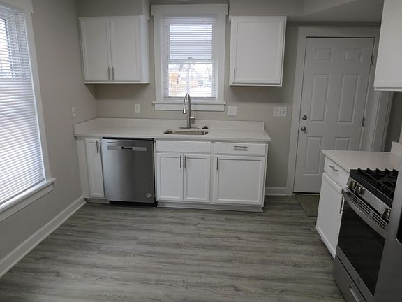 Completely Renovated Home . White kitchen cabinets with GRANITE counter tops and stainless appliances including built in microwave. New vinyl flooring in entry, kitchen, dining room and living room. New carpet on the stairs, hallway and bedrooms. Freshly painted, new front and back doors. White trim and interior 6 panel doors. New remodelled bathroom with open storage. Replacement windows and new blinds on all the windows. Covered front and rear porches to relax on those summer evenings. Large fenced back yard with storage shed. High effeciency furnace and newer hot water tank. Updated electric. Utility area has double sinks. Great bones in this older home and ready for you to move in.