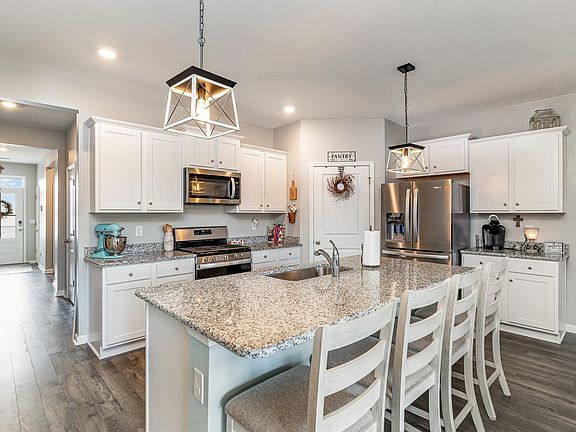 - Features: Breakfast Bar, Kitchen Island, Pantry, Stainless Steel Appliances, Solid Surface Counters