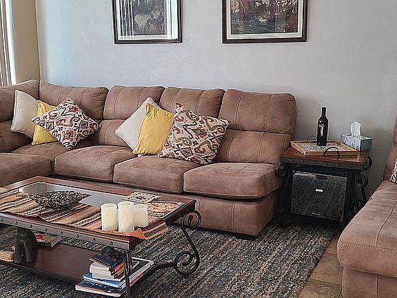 BUILT IN 2017 BY DR HORTON. STILL LOOKS AND FEELS BRAND NEW! HIGHLY UPGRADED AND CUSTOMIZED WITH ALL THE BELLS AND WHISTLES. CROWN MOLDING, GRANITE COUNTERS. TILE FLOORS, CUSTOM PAINT AND FINISHES. STAINLESS STEEL APPLIANCES. OPEN FLOORPLAN GREAT FOR ENTERTAINING. LARGE ISLAND KITCHEN WITH L SHAPED CENTER ISLAND. CUSTOM DINING NOOK WITH TILED WALL. BRIGHT INTERIOR. PRIME LOT NESTLED ATOP A BLUFF. BACKYARD OVERLOOKS VALLEY, PANORAMIC MOUNTAIN VIEWS. RESORT STYLE BACKYARD, WTIH PERGOLA, RIVER ROCK, PUTTING GREEN, OUTDOOR LIGHTING. VERY QUITE, PEACEFUL SETTING YOU MAY EVEN BE GREETED BY HUMMINGBIRDS. 4 BEDROOMS, 2 BATHS, 2 CAR GARAGE. MASTER BEDROOM IS SEPARATE FROM THE OTHER 3 BEDROOMS. LAUNDRY ROOM. FINISHED GARAGE WITH SOFTWATER LOOP. PREWIRED HOME FOR SURROUND SOUND/HOME THEATER. TILE FLOORS THROUGHOUT MAIN AREA. CROWN MOLDING, CUSTOM PAINT FINISH. SPA AND FURNITURE ARE AVAILABLE FOR PURCHASE IF DESIRED. ENERGY EFFICIENT HOME TYPICAL $100 - $150/MO POWER, $10/MO GAS, $30/MO WATER.