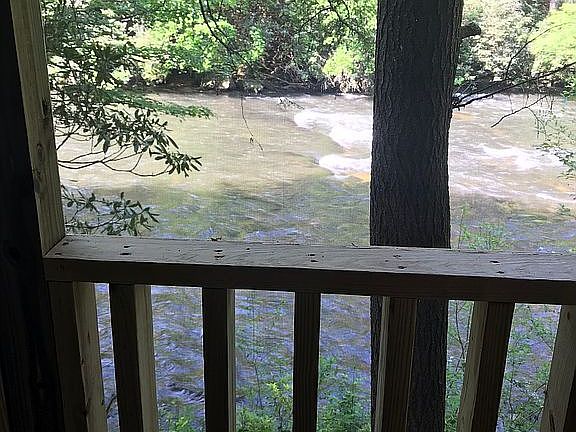 This family cabin is located right on the Toccoa River. Sit on the screened porch and watch the kayaks and tubers go by just feet away. This house 2 bedrooms and 2 full baths with a loft that will fit two twin beds.