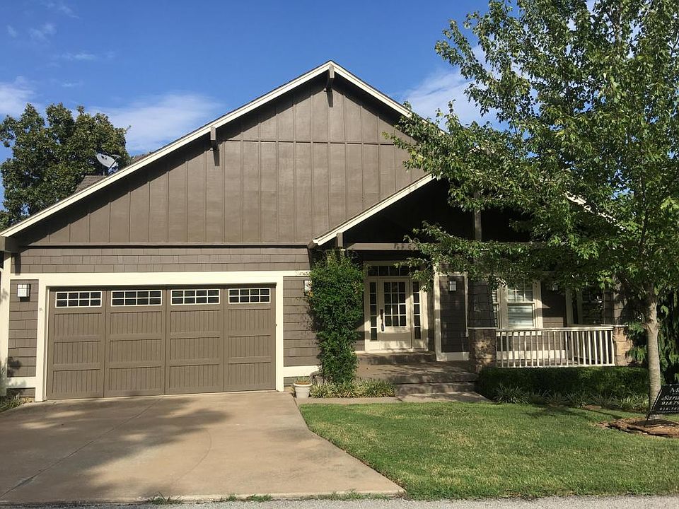 The Lodges at Melody Point on Grand Lake with views of cascading ponds, beautiful corner lot, 3400 sq.ft, 4 bedroom 3 bath with room to expand on lower level, 2 living areas, hardwood floors, vaulted ceiling living room, wet bar, wb fireplace, custom cabinets, granite center island, golf cart garage, newly painted exterior, gated, boat slips available. $5,000 interior paint allowance.