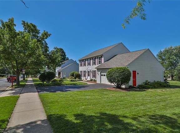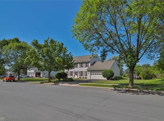 Sunlight fills this well-designed family home. Large, formal living room and dining room. Open floor plan for kitchen and cathedral ceilinged great room with wood fireplace insert. Kitchen is updated with granite countertops, glass block back splash and new appliances. Four bedrooms, all on second floor. Large master bedroom with updated master bath. Second bath has dressing area attached, one half bath downstairs. Finished lower level media room/playroom. Mature, landscaped yard with spacious deck leading to above ground pool and large, fenced in backyard. All this within the sought-after East Penn school district, and Farmington Hills neighborhood.