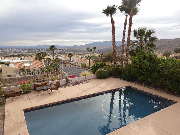 One of the nicest views in Laughlin. This house will not disappoint! House has incredible backyard built for fun and relaxation. Wait until you see the amazing view! Pool is a play pool - 3 feet deep at the ends and 5 feet deep in the center. Perfect for entertaining and water fun. Pool equipment replaced 2016. IAquaLink smart phone technology added in 2019. You can turn on Pool Heater with your phone! Natural gas BBQ. Landscaped backyard with irrigation. Seven minutes to Casinos. 20 minutes to Katherine Landing/Lake Mohave. Renovation done Spring 2016. Four bedroom 2 1/2 bath home. All bedrooms upstairs. Great nearby restaurants and world class entertainment. Home has gated boat and RV parking. 20 1/2 feet deep by 9ft 6in wide if you keep the shed. If you remove shed 31 ft deep by 9 ft 6in w. Front of gate parking 34 deep by 10 ft wide. 2 car attached garage. Safe and quiet neighborhood. Lots of extra parking on street. Private walled courtyard in front yard with fountain. Newer stainless refrigerator, gas range, dishwasher & microwave all included. Newer washer and dryer included also. Furniture negotiable outside of escrow. Master Bedroom has a large balcony with more incredible views. Large Patio is covered with panoramic view of the river, entire Mohave Valley & mountains. NO HOA. Amazing neighbors. If you already have a realtor, we will pay 2.5% commission to your buyers agent! *We have done for sale by owner before. It is easy and we have all paperwork. Sasha Orth at Chicago Title to be escrow officer.