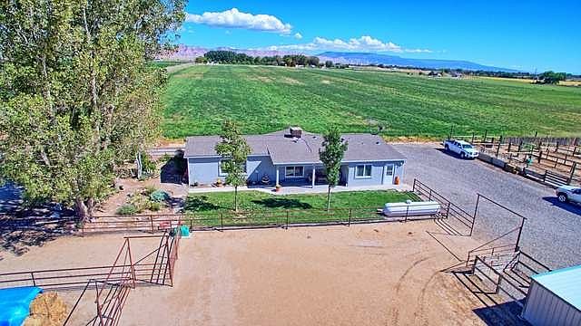 Beautiful farm ground north of Grand Junction towards Fruita. This 35 acre parcel features pipe pens and corrals, which makes it a turn-key cow-calf operation and horse facility. Completely fenced and cross-fenced. This property shows pride of ownership! Amazing views of the Monument and Bookcliffs. You can't beat this location! You will be very impressed with the upgrades in the home! Stucco exterior, new kitchen cabinets, countertops and flooring. Updates in the bathrooms as well. Paint and textured walls and lots of windows for natural light. Come see this great property.