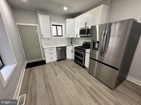 Welcome to this fully renovated 3 bedroom, 2.5 bath charm house in the heart of South Philadelphia. The first floor offers an open living room with a modern stone TV accent wall, a powder room, dining area, and shiny eat-in kitchen with granite counter-tops, tiled back splashes, and stainless steel appliances. Outside the kitchen is a brand-new backyard with a planting bed. Three nice sized bedrooms with plenty of sunshine and closets. Master bathroom boasts standing tiled shower with a sliding glass door. And a 3-piece hallway bathroom with a relaxing bathtub. Everything is new; new roof, new HVAC, new plumbing, new windows, new laminated floor throughout, new finished basement with laundry, new patio, etc. Never miss this sweet home and make your appointment today!