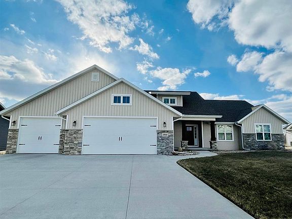New Construction without the wait! Magnolia Inspired Kitchen & Open Plan Dining-Living Room Entertaining Spaces. Beautiful Interior Architectural Details, Archways, Grand Granite Island & Quartz Countertops. High End Appliance, Lighting, & Finish Upgrades. Walkout 18' x 15' Outdoor Patio perfect for relaxing country sunsets. Large Primary Ensuite has own wing of this spanning ranch layout. Gas Fireplace. 3 Car Garage. Formal Entry & Mudroom off Garage with Message Center. Basement is a blank canvas for your finishing touches: has egress window, is stubbed for bathroom, & finished family room. Yard is landscaped with perennials & stonework. New Development is walking distance to Traeger-Oshkosh Schools & 1 Block from the YMCA. New Home is Energy Certified. Call for a private showing now!