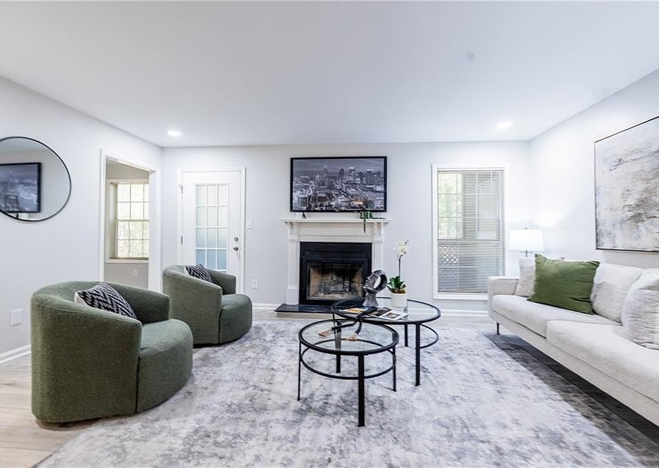 Welcome to your updated and spacious end-unit home in a great location! This 2-bedroom, 2-bathroom condo with a bonus office space has everything you need to live, work, and relax in style. Start by kicking back on the private, covered front porch, and then step inside to discover a beautifully renovated space that’s perfect for everyday living and entertaining. The open layout features a cozy fireplace, a bar for hosting friends, and a super versatile flex space off the living room—ideal for a home office, yoga spot, or playroom. The kitchen is a total win with gorgeous countertops, stainless-steel appliances, a big pantry, and plenty of cabinet storage. When it’s time to unwind, head to the primary bedroom, complete with a walk-in closet and a private en-suite bathroom featuring dual sinks, a linen closet, and a sleek glass-enclosed tile shower. One of the best features is the screened-in porch! It’s the perfect spot to relax and enjoy the view of the private wooded lot. There’s also weatherproof storage off the screened-in porch as well. This location couldn’t be better, with easy access to 285, 85, and 141, making it super convenient to get anywhere in the city. Plus, the community has great perks like a swimming pool and a community area for grilling and entertaining with neighbors and friends. You’re also just a short walk to Brook Run Park and Chesnut Elementary School. The seller recently added recessed lighting in the Living Room and fans in both bedrooms for better lighting throughout the condo. This home checks all the boxes—come see it for yourself!