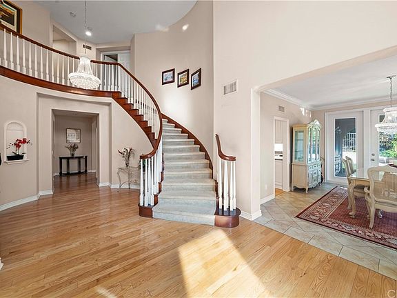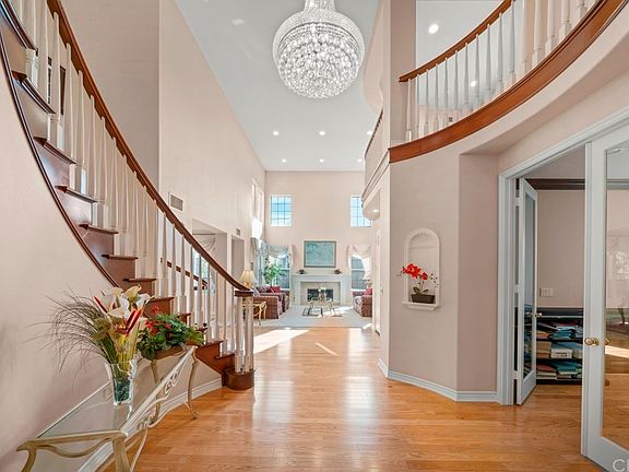 This is your chance to own the biggest and the best in Parkridge Estates! As the largest model, it is easy to see why this home is one of the most popular. With 5 bedrooms, 5.5 bathrooms, and an office, this 4205 sqft property checks all of the boxes. Enter through either gate and make your way to this single-loaded street. The foyer welcomes you with second-story high ceilings and a spiral staircase illuminated by a sparkling chandelier. As you move past the formal living and dining rooms, you will find the magnificent great room comprised of an oversized kitchen and family room. Featuring Wolf appliances, a built-in Sub-Zero refrigerator, and large center island as well as a walk-in pantry, the kitchen is perfect for entertaining. A downstairs bedroom with full bath, laundry room, and office with glass doors and dark wood wainscoting finish the first level. Upstairs, the master bedroom runs the length of the entire house and includes a seating area with fireplace, large bathroom with dual vanity and soaking tub, and walk-in closet. Three large bedrooms, each with an en-suite bath, and a sitting nook open to the living room below allow for plenty of space upstairs. Outside, finished patios with recessed lighting, a new BBQ area, and open grass offer space for many activities. Fully owned solar panels and an HOA managed slope for privacy add to the amenities. With attendance to Villa Park Schools and a central location, this home has everything you are looking for!