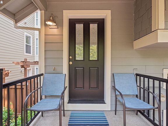You won't want to miss viewing this pristine, two-owner, end unit townhome! End unit specific extra windows and tall ceilings bring in abundant natural light throughout the home. Newer plush carpet and carpet pad, interior paint, freshly redone garage with shelving, trex back balcony with retractable awning and security screen for extra privacy (although barely needed with the abundance of trees surrounding the property!), SS appliances and new Samsung washer/dryer included, master closet comes with built ins. Enjoy a coffee or glass of wine in the privacy and serenity of either of your back outdoor living spaces. Bottom (street level) floor has large bedroom and full bath with access from garage and separate exterior access for mother-in-law or roommate separate living quarters. Community provides its own playground as well as backing to Orchard Disc Golf Park offering outdoor trails for walking/running/biking and other recreational activities. Take advantage of the stellar location, situated near Nike, Intel, Streets of Tanasbourne, and more. Lives large!