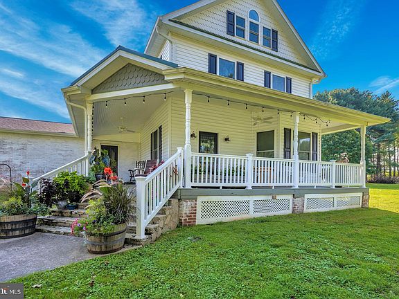 Be prepared to fall in love, This is one gorgeous home!!!! Originally built in 1872 on a 204 acre dairy farm. Over the years the farm transitioned from dairy to cattle and then thoroughbred horses. The brick extension was added in 1980 with an European lime wash and the entire home was renovated to its current design in 2016. The property was brought down to a 1 acre lot and left the original footprint of the home. The wrap around porch is timeless. Authenticity is important so major renovations only included removing walls in kitchen to create the open concept, extension of primary bedroom created an ensuite bathroom with two vanities and the European walk-in tiled shower room. The extension was updated to create useful storage, an oversized laundry room and informal spaces that farm houses sometimes lack. A large room with a separate outdoor exit could be used as a home office or additional family room. The barn doors into this part of the house were added as a reminder of the homes history as a working farmhouse. The stone surround on the living room fireplace and stone back porch were quarried from the farm. There is a beautiful wood staircase in the front foyer as well as a rear staircase off the kitchen. Take a moment to admire this kitchen! Complete with an oversized island, ample cabinet space , pantry and still plenty of room for a table. The wood trim and bannisters throughout the home are some of the original pieces that so many try to duplicate. Once you make your way up stairs you will see the second level showcases beautiful woods floors leading you to 4 bedrooms and another staircase leading upstairs to another finished level that could be bedrooms, a gym , home office or playroom! The view from upstairs over the remaining farm land is unmatched. There is SO MUCH to see!! Call your favorite Realtor to schedule a tour.