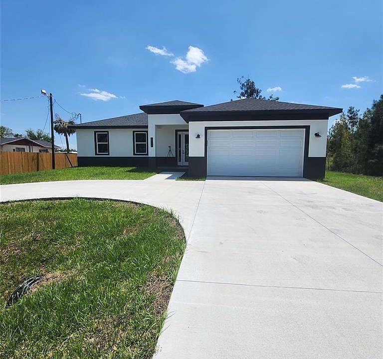 NEW CONSTRUCTION! NEW CONSTRUCTION! Have you been waiting for the perfect house to call home? Well, this is the one. Come take a tour of this four-bedroom, two-bath custom home. As soon as you drive up to the home you will be greeted with a beautiful circular driveway that takes you right up to the two-car garage. As you make your way to the front door you will be led through a wide foyer that opens to an open floor plan of the kitchen, living room, and dining room. You will notice the beautiful coffered ceilings throughout the house, high ceilings in the bedrooms, hurricane-impact windows, with 8ft doors throughout the whole house. You will also take note of the gorgeous wood tile that is featured throughout the whole house. The home features a split floor plan that gives you three bedrooms and one bathroom on one side of the house and the master bedroom and bathroom on the other side. You will love that all the closets in the bedrooms have a custom closet system installed. There are details throughout the house that stay consistent throughout the home like the farm-style sinks in all the bathrooms & kitchen and the beautiful light fixtures. In the kitchen, you will find a large kitchen island that features a farm-styled sink with plenty of room for bar stools for an eat-in kitchen. The Kitchen features beautiful quartz countertops with white custom cabinets that have soft-close drawers alongside two pantries for all your storage needs. The home comes with stainless steel appliances: refrigerator, range, dishwasher, and microwave. Right off the kitchen, you will find an inside laundry room that also features a closet along with upper cabinets. Through the laundry room, you will find a large 2-car garage that has a side door to go out of if need be. The garage floor has been finished with garage epoxy with flax's. Come fall in love.