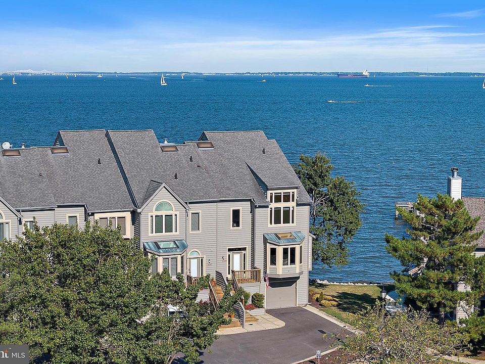 Please show for back ups!This spectacular end-unit townhome in the gated waterfront community of Chesapeake Harbour offers stunning panoramic views of the Chesapeake Bay and Bay Bridge. With 3,082 sq. ft. across four finished levels and a private elevator, this residence blends luxury, comfort, and convenience. Highlights include a wraparound main-level deck perfect for entertaining, a living room with fireplace and custom built-ins, and a gourmet kitchen with SubZero refrigerator, GE double ovens, granite and Corian countertops, and skylights. The primary suite boasts a private deck with breathtaking Bay views, three closets, and a new (2024) spa-inspired bath with custom cabinetry, soaking tub, and walk-in shower. The loft level offers unmatched views of the Bay along with a full bath, while the finished lower level provides a wet bar, full bath, workshop, and access to a one-car garage with storage plus parking for two additional vehicles. Major updates include lower-level HVAC (2022), 80-gallon water heater (2021), freshly painted interiors (2025), and multiple window/door replacements. The community of Chesapeake Harbour offers an incredible array of amenities including: gated and guarded security, professional management, two community pools (one with bay views), tennis courts, walking trails, beaches, a jetty pier, marina, community grills and public waterfront restaurant. Condo and HOA takes care of landscaping, trash/snow removal, Comcast, and flood insurance. HOA maintains siding, decks, roof (replacement scheduled for 2026), gutters, and annual fireplace/termite inspections. Enjoy resort-style living with stunning water views just minutes from Downtown Annapolis in one of the most desirable waterfront communities.