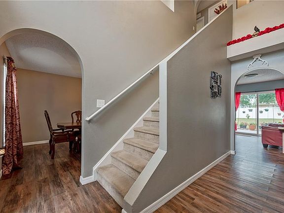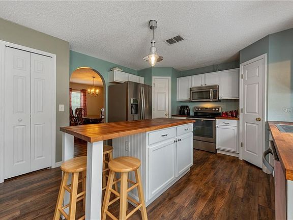 Welcome home to the beautiful town of Eustis - quaint, family-friendly and full of history! Whether you're a first-time home buyer or investor, you'll appreciate this lovely 2-STORY HOME on an OVERSIZED CORNER LOT with a LOW HOA! A bright foyer invites you in and to the left you will find a FORMAL DINING ROOM perfect for entertaining that flows right into the updated EAT IN KITCHEN. Thoughtfully designed with the home chef in mind the UPDATED KITCHEN has a country chic vibe and delivers STAINLESS STEEL APPLIANCES, BUTCHER BLOCK COUNTERTOPS, ample storage, a CENTER ISLAND with even more storage and BREAKFAST BAR SEATING and a spacious DINETTE area for casual dining all with SLIDING GLASS DOOR access to the PATIO and generous BACKYARD! From there this ideal floor plan brings you into a large LIVING ROOM with a wall of gorgeous BUILT IN SHELVING, perfect for displaying all your family memories! The first floor boasts beautiful VINYL WOOD PLANK FLOORS throughout and is completed by a BEDROOM and convenient HALF BATH! On the second floor you will find THREE great sized guest bedrooms all with CEILING FANS, a FULL GUEST BATH and your PRIVATE MASTER SUITE highlighted by a HIGH CEILING, lovely ARCHED DOORWAYS, a WALK IN CLOSET and MASTER BATH offering a SOAKING TUB and SEPARATE SHOWER! Step outside and start dreaming of creating your perfect outdoor living area, the expansive FULLY FENCED BACKYARD is ready and waiting for you to enjoy summer evenings cooking out with family or add the pool you have always wanted! **This home is being sold FULLY FURNISHED so you can MOVE RIGHT IN!** Conveniently located just minutes from Downtown Eustis and Historic Mt. Dora, Lake Eustis and Lake Dora for all your shopping, dining, recreational and entertainment needs! Enjoy easy access to HWY 441 and 429 and Orlando via I-4 or the Florida Turnpike. Quail Hollow is a friendly and quiet established community in the heart of Eustis convenient to everything. Don't miss the opportunity to make this home YOURS! **Tour this property virtually on Zillow!**