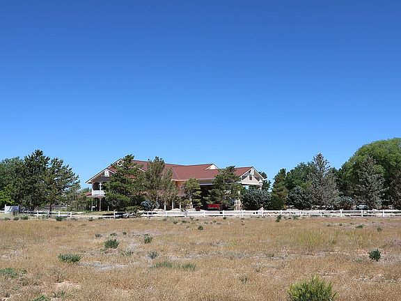 Beautiful Ranch home setting on 5.5 acres close to town. This prestigious luxury home exudes quality from every inch of its 9,000 plus sq. ft. This residence includes 3 bedrooms, 4 baths, 2 half baths, Also it features a home office with granite countertops and cabinets, gigantic laundry room with mud sink and sewing desk. This spacious home has granite throughout with high end finishes and spacious areas such as living room, family room, theater room, formal dining room, game/bar room, large kitchen, office with drafting table, laundry and pantry room. The luxurious master suite has 2 walk-in closets, fireplace built in and current remodel of master bath with large shower and free standing tub and many extras. This property also boasts of 2 large oversized RV garages, 3 standard car garage with 8' high doors and storage room the full length. Above the garage is a 2 bed 1 bath apartment with separate entrance. A large Master Bedroom with electric fireplace is on the main level with large walk in closet and newly remodeled and updated Master Bathroom. There are 2 bedrooms upstairs with large updated and remodeled en suite bathrooms and walk in closets. The game room with large bar area also on the second floor, has a large balcony facing south to see incredible views of the City lights and the town nestled in the valley of the mountains. The home has wrap around porches from east to west with large built in gas bbq. The home has beautiful copper roofing and extensive solar panels installed. The property is pond ready, mature trees that make a walk in the park just steps from your front door. The large carport and custom stained glass windows welcome you to your home in grand style. There is a horse paddock in the west field with plenty of acres ready for you to imagine your dream lifestyle.