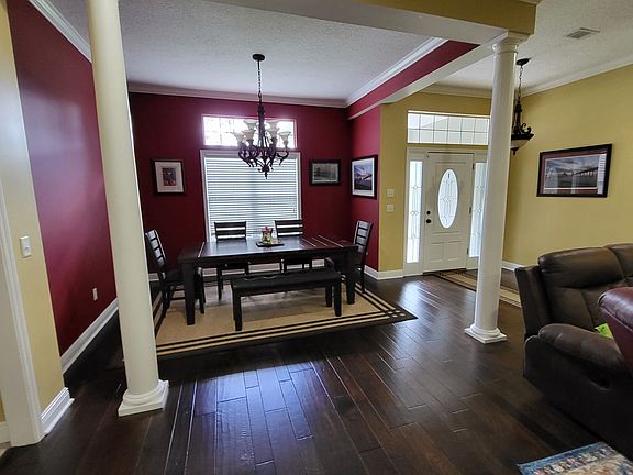 This very private home on the cul-de-sac is Southern Elegance at its best, from the immaculate landscaping to the hardwood flooring, the home is amazingly well cared for. The roof and ac units have been replaced recently. The open concept split floor plan home is perfect for entertaining. The living area is spacious with a set up for a gas fireplace, formal dining room, breakfast nook and bar have plenty of room for that family dinner. The sunroom has lots of natural light and opens out to a screened in porch for outside entertaining. The master suite features 3 closets, vaulted ceiling, jetted garden tub, and his and her sinks. On the other side of the house are the three other bedroom and a spacious bath. The home also features a powder room. sits on 1.10 acres