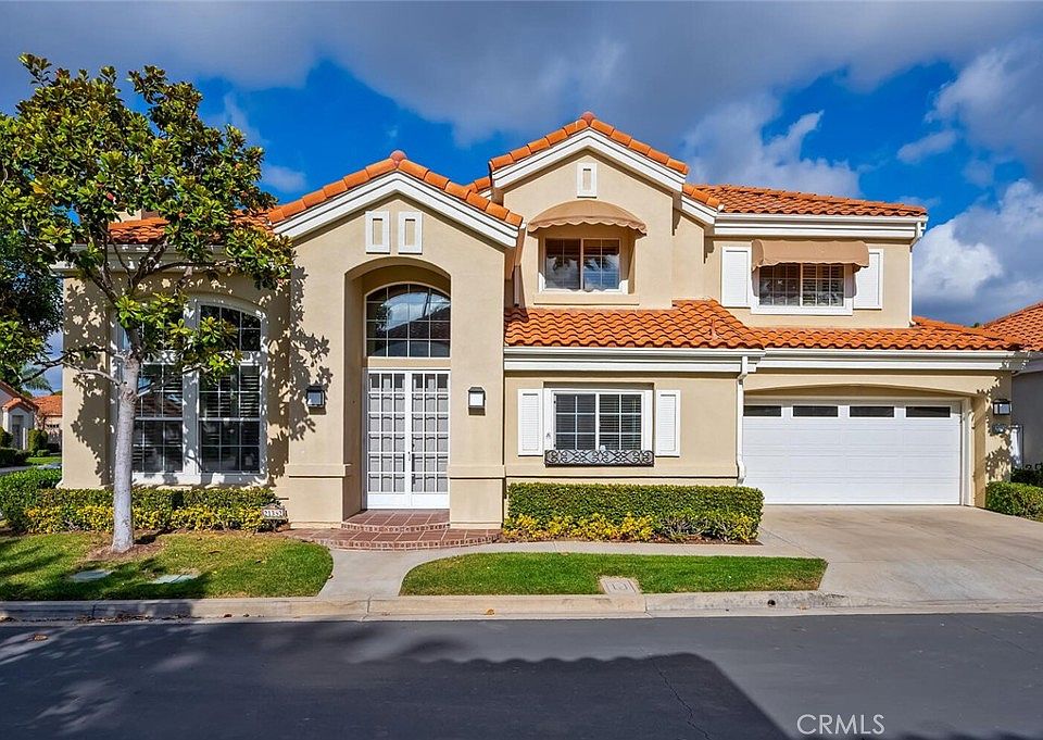 Welcome to your New home in the fabulous 55+ community of Palmia. This lovely property offers a truly individual identity, with functional living. Situated on a corner lot, this home provides the perfect blend of comfort and elegance. As you enter, you'll be greeted by a generous living space, featuring high ceilings and large windows that let in an abundance of natural light. The open floor plan seamlessly connects the Great room, Dining area, and Den creating an ideal space for both daily living and entertaining. A cozy fireplace and plantation shutters add warmth and charm. It's the perfect space for making memories and entertaining friends and family. The large kitchen with Granite countertops, is completmented by a suite of Modern Appliances, including a warming drawer to elevate your cooking experience. Retreat to the first-level Master bedroom, which features an Ensuite bath, Dual vanities and a Walk-in closet. Need a private workspace or a serene reading nook? A quaint office/den also on the first level, provides flexibility for your needs. Upstairs, you will find a nicely sized loft area and a Second level Ensuite Bedroom, providing a retreat-like experience. Step outside to the wrap around yard and relax under the inviting Aluma-wood patio cover. It's the perfect blend of privacy and natural beauty and the perfect extension of your living area. Relish the unique location of residing on a charming corner lot with only two other homes on this quiet cul-de-sac. Affording exclusive access to healthful amenities, the community delivers convenience to the clubhouse, a swimming pool, a jacuzzi, an 18-hole putting green, a fitness room, Pickleball courts, Tennis Courts, a library, shuffleboard, and bocce ball. Palmia homeowners also enjoy membership to Lake Mission Viejo with boating, beaches, concerts, and picnicking. Shopping, restaurants, and more are also nearby. Welcome home!
