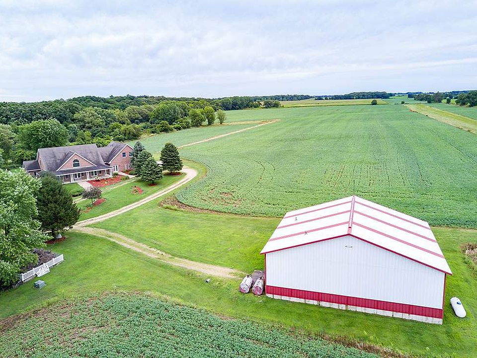Amazing 80 acre property zoned ag. with tillable acres. a FAA approved air strip, commercial grade hanger, pond and a beautiful brick home. Multiple suites 5 bedroom, 5 1/2 bath home. Gourmet kitchen with a walk-in pantry. Eat in kitchen area and a formal dining room. Deck off of master suite overlooks the pond. Laundry rooms (2) on main level and second level. In-law suite (840 sq ft of the above grade living space) above garage with the 5th bedroom, kitchen and full bath. Finished basement with bar. Very unique property with so much to offer!