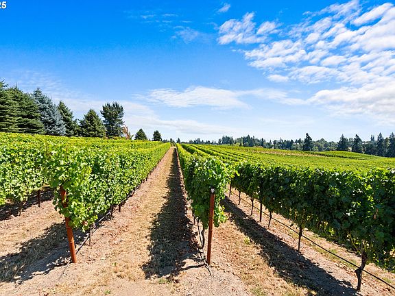Rare and Remarkable Opportunity! Two Homes. 51.41 acres. 34 acres of Vineyard. Turnkey Winery and Vineyard. WATER RIGHTS. 600 gallon per minute irrigation well. Domestic well 70 gallons per minute. Aurora Vineyards stands as a premier vineyard and winery estate in the heart of Oregon’s Willamette Valley. Recognized for its notable blend of high-quality wine production and vibrant event hosting capabilities, serving both local and destination clients. Tasting room blends rustic elegance with modern comfort, offering chef-prepared cuisine, award winning wines, and live music in a relaxed yet refined setting. Guests enjoy indoor seating and a spacious outdoor deck overlooking a waterfall and pond, creating a memorable experience for casual visitors and wine club members alike. Sale includes the entire real estate holding, all vineyard plantings, the winery facility and hospitality infrastructures, and all associated inventory and equipment. The property encompasses a modern, fully equipped winery, with on-site production capabilities for all stages of vinification. The on-site venue and event spaces provide a picturesque backdrop for weddings, private celebrations, and corporate gatherings. Surrounded by vineyards and manicured gardens, the venue features elegant architecture, bridal and groomsmen suites, and seamless flow into reception areas—making it a turnkey destination for unforgettable events. After 25 years of vision and dedication to his customers and the land, the owner is retiring from his passion of thriving vineyard, winery and event venue which has cultivated widespread acclaim for award winning wines and a proud reputation for quality. This transition marks the end of an era—and the beginning of a rare opportunity for a new owner to carry forward this legacy built on craftsmanship and quality. All buildings and details in document section.