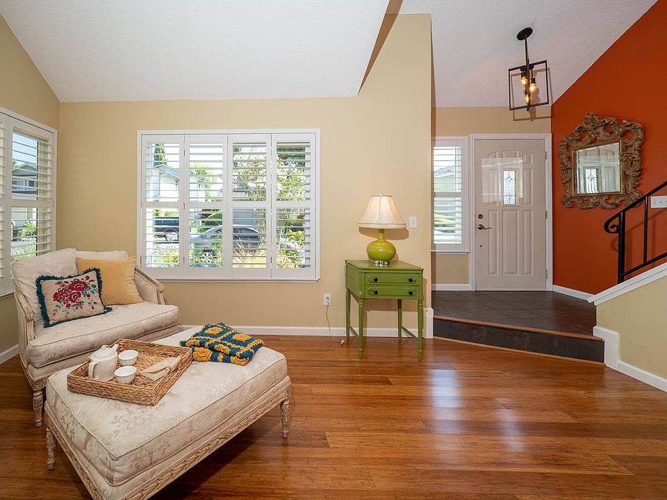 This is the home you've been searching for! It is north facing and ready to move in. As soon as you enter you notice the high ceiling, which makes it look and feel spacious. The kitchen and all the bathrooms are beautifully updated. Eco-friendly flooring includes wood, cork and bamboo. It is minutes away from both I-580 and I-680 freeways, but is located in a quiet tree-lined neighborhood with broad streets. The convenient location of this home is incomparable, as it is also close to top Pleasanton schools, large parks with playground for children and a basketball court in Nielsen Park. The Iron Horse trail is used by walkers and bikers alike. If you like home-grown fruit, there is a fig tree, and mandarin and lemon as well!