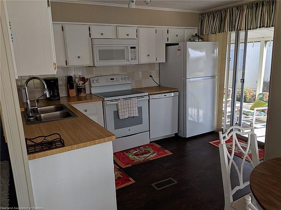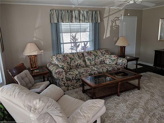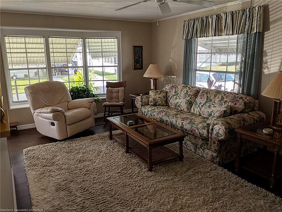 MOVE-IN READY 2 bedroom 2 bathroom doublewide with extra wide driveway on rented lot in 55+ Woodhaven Estates, a very popular adult community in Sebring. The home was painted outside approx. 1 year ago and more recently inside. It is spotless and comes nicely furnished, the only thing the new owner would require is a television. The large screened room is off the kitchen so perfect for relaxing with your morning coffee or evening cocktail! The flooring has an attractive waterproof vinyl planking throughout the living area and kitchen, which is extremely pleasing on the eye. The 10x10 laundry room/workshop is located at the rear of screen room, so very easy to get to. The property also has hurricane shutters on the front and left side. This friendly community is ideally located for easy access into town and has a community swimming pool and shuffleboard courts. The monthly lot rent of $335 includes the use of the amenities as well as garbage pick up. Dogs are not allowed in this section of the community.