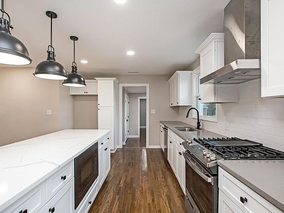 Welcome to this cute 3 bedroom, 2 bathroom home in Nashville. Head inside to the combine living, dining, and kitchen space. The kitchen features an eat-in island for additional seating, quartz counters, custom cabinetry, and stainless steel appliances. The living room includes plenty windows for natural light and a fireplace to cozy up next to when it's cold. This home's layout makes for easy entertaining! The primary bedroom includes a walk-in closet, en-suite bathroom with dual vanity sinks, and a standing glass shower tiled in classic subway tiles. The remaining two bedrooms share a bathroom with dual vanity sinks, plenty of cabinet storage, and a combo tub/shower. This home also features driveway parking, roof installed in 2021, and laundry/utility room with access to outside.