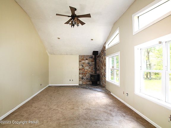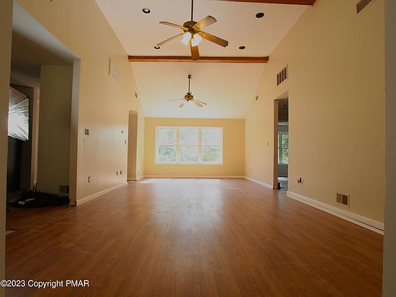 BRING ALL OFFERS!!!!! Lovely ranch in the stately Pocono community Sierra View features a new roof, New propane heating system, new floors, new carpet, new bathrooms, and a New Kitchen. an open floor plan with Master BR, LR, DR, family room, and 2 bonus rooms on the first floor, kitchen with granite countertops, vinyl plank and ceramic flooring, and new stainless-steel appliances. Cathedral ceilings in the living room and gracious-sized dining room are underscored by new laminate flooring and beautiful French doors to the den. Sitting room off of the master bedroom with masonry stone floor. Security system and security cameras. All new plumbing, heating, and electrical. It won't last long, call for your showing today!