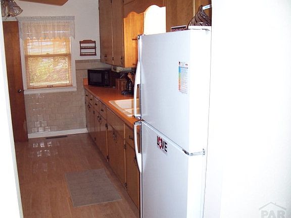One owner home, exceptionally well care for home with tidy front and back yards, rancher with 3 bedrooms, 1 bath, Detached block built 2 Car Garage with Drive way. New roof, awnings, gutters in 2009, Furnace 7 years old, Hardwood floors under carpet. Large basement bedroom with built-ins, Large family room with a wall of closets, a work room by utilities along with washer and dryer (CF&I Shower) in basement. Priced to sell!