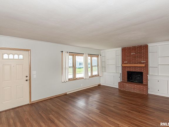 Don't miss this 3 bedroom, 2 bath ranch home. Huge living room with fireplace and built-ins, 3 bedrooms with nice sized closets, updated main level bath plus kitchen on the main level. Full basement has 2nd fireplace , tons of storage and laundry hook-ups. Walk out from the living room to a deck and fenced backyard. 2 car garage with overhang and add'l slab that backs out to alley. Updates per seller: June 2023 New roof and new extended gutters and shutters, 2020 new central air and new flooring in living room, kitchen and hall, 2017 new built-ins around fireplace, New ceiling fans and updated full bath. Selling "as-is" Seller has never used either fireplace