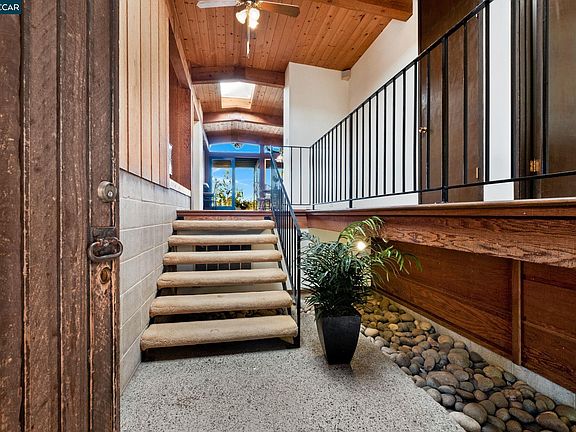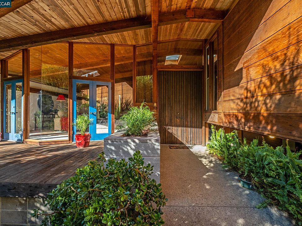 Stunning Mid century Architecture. High vaulted ceilings and Large windows and walls of glass, special modern details everywhere. 2278 Sqft of living. 4 bedrooms, 2 Bathrooms. Formal living room with front deck with Dbl french doors, raised hearth fireplace, Large formal dining room.Family room to kitchen open concept with large 2nd wall of glass ,DBL sliding door to back deck. Laundry room and inside patio. Truly the architecture of this home is stunning, if mid century style is what you love you will love this home and location. On serene court location ,surrounded by mature trees and shrubs. Walk to Top rated Elementary and Middle school. Minutes from HWY 13,HWY24,580 and Bart. Minutes from Boutique local restaurants ,grocery store, Parks and trails. OPEN SAT & SUN 2-4 PM